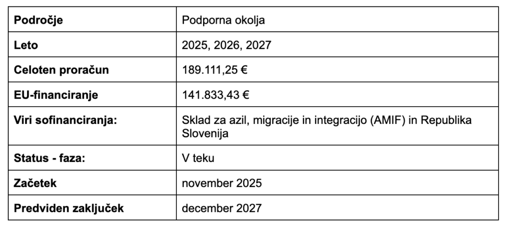 Vrednost projekta: 189.111,25 eur (sofinanciranje: 141.833,43 AMIF, 47.277,82 RS)
