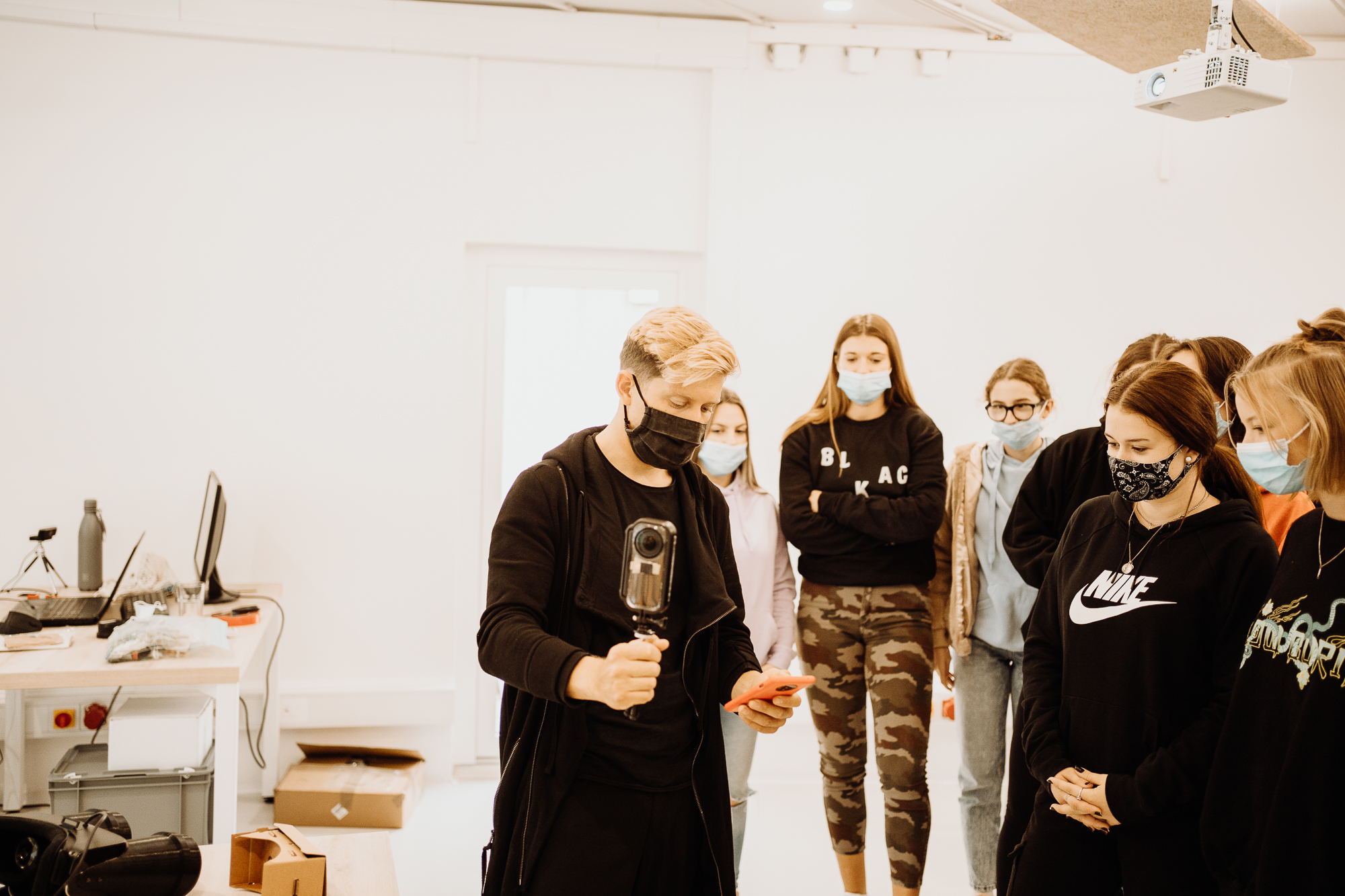 Na drugi delavnici so se dijaki spoznali z osnovami virtualne resničnosti (VR), ki je eden izmed inovativnih načinov, kako lahko tudi z umetnostjo opozorimo širšo javnost o posledicah človeškega onesnaževanja morja. Na delavnici so se dijaki spoznali s pristopi in tehnikami VR snemanja, izdelali so svoja kartonska VR očala ter z različnimi tipi VR očal vstopili v različne virtualne realnosti (reka, gozd). Nato pa so sodelovali pri snemanju ozaveščevalnega videa z vodoodporno kamero.